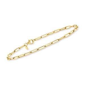 Italian 14kt Yellow Gold Personalized Disc Charm Bead Station Anklet