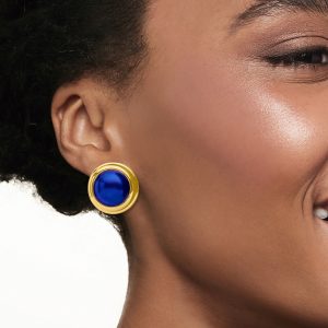 C. 1970 Vintage Blue Enamel Round Clip-On Earrings in 18kt Yellow Gold