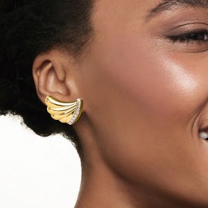 C. 1980 Vintage .50 ct. t.w. Diamond Curved Earrings in 18kt Two-Tone Gold