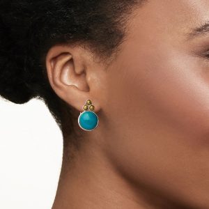 Turquoise Bead Trio Earrings in Sterling Silver and 14kt Yellow Gold