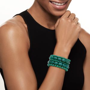 Green Chalcedony Bead Jewelry Set: Five Stretch Bracelets. 7″