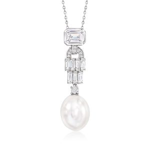 12-12.5mm Shell Pearl and 2.70 ct. t.w. CZ Vintage-Style Pendant Necklace in Sterling Silver. 18″