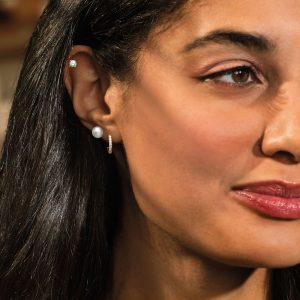 3-3.5mm Cultured Pearl Hoop Earrings in 10kt Yellow Gold. 7/8″