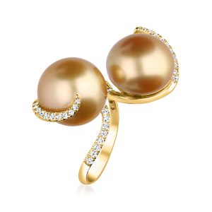 11-12mm Golden Cultured South Sea Pearl Bypass Ring with .48 ct. t.w. Diamonds in 14kt Yellow Gold