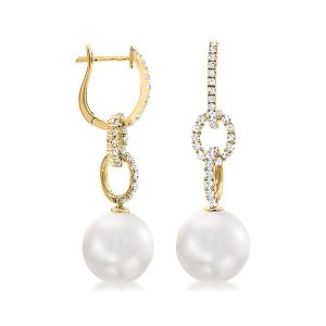12-13mm Cultured South Sea Pearl Drop Earrings with .80 ct. t.w. Diamonds in 18kt Yellow Gold