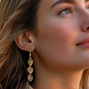 Italian Tonal Blue Murano Glass Evil Eye Drop Earrings with 18kt Gold Over Sterling