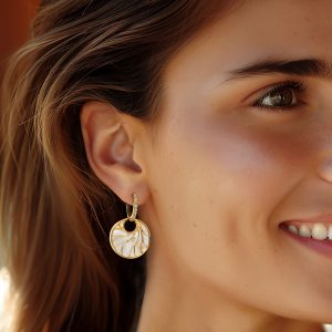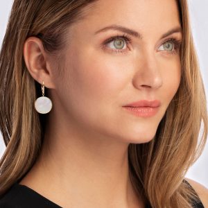 Mother-of-Pearl and .10 ct. t.w. White Topaz Circle Drop Earrings in 18kt Gold Over Sterling