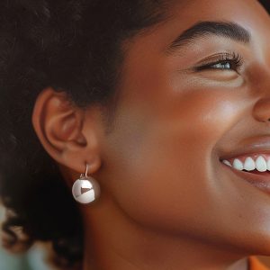 Italian 3mm Two-Tone Sterling Silver Removable Bead Hoop Earrings. 1 1/2″