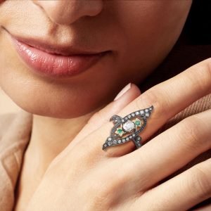 C. 1960 Vintage 14kt Yellow Gold Beetle Pin with Green Chalcedony and Multicolored Enamel