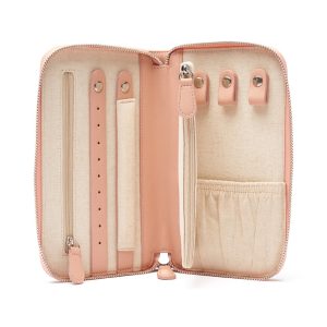 Brouk & Co. “Croft Avenue – Luna” Pink Faux Leather Travel Jewelry Wallet