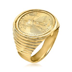 Men’s 22kt Yellow Gold American Eagle Coin Ring in 14kt Yellow Gold