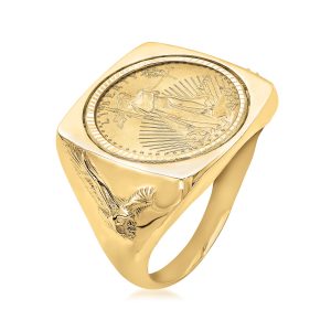 Men’s 22kt Yellow Gold American Eagle Coin Square-Top Ring in 14kt Yellow Gold