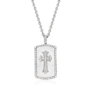 Men’s 1.00 ct. t.w. Lab-Grown Diamond Cross Dog Tag Pendant Necklace in Sterling Silver. 22″