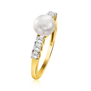 6.5-7mm Cultured Pearl and .33 ct. t.w. Diamond Ring in 14kt Yellow Gold