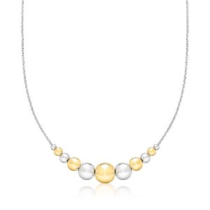 Italian Sterling Silver and 18kt Gold Over Sterling Graduated Bead Cable-Chain Necklace. 18″