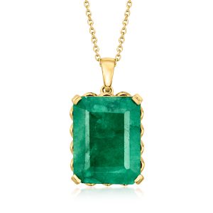 11.00 Carat Emerald Pendant Necklace in 18kt Gold Over Sterling. 18″