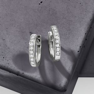 .10 ct. t.w. Diamond Huggie Hoop Earrings in Sterling Silver. 1/4″