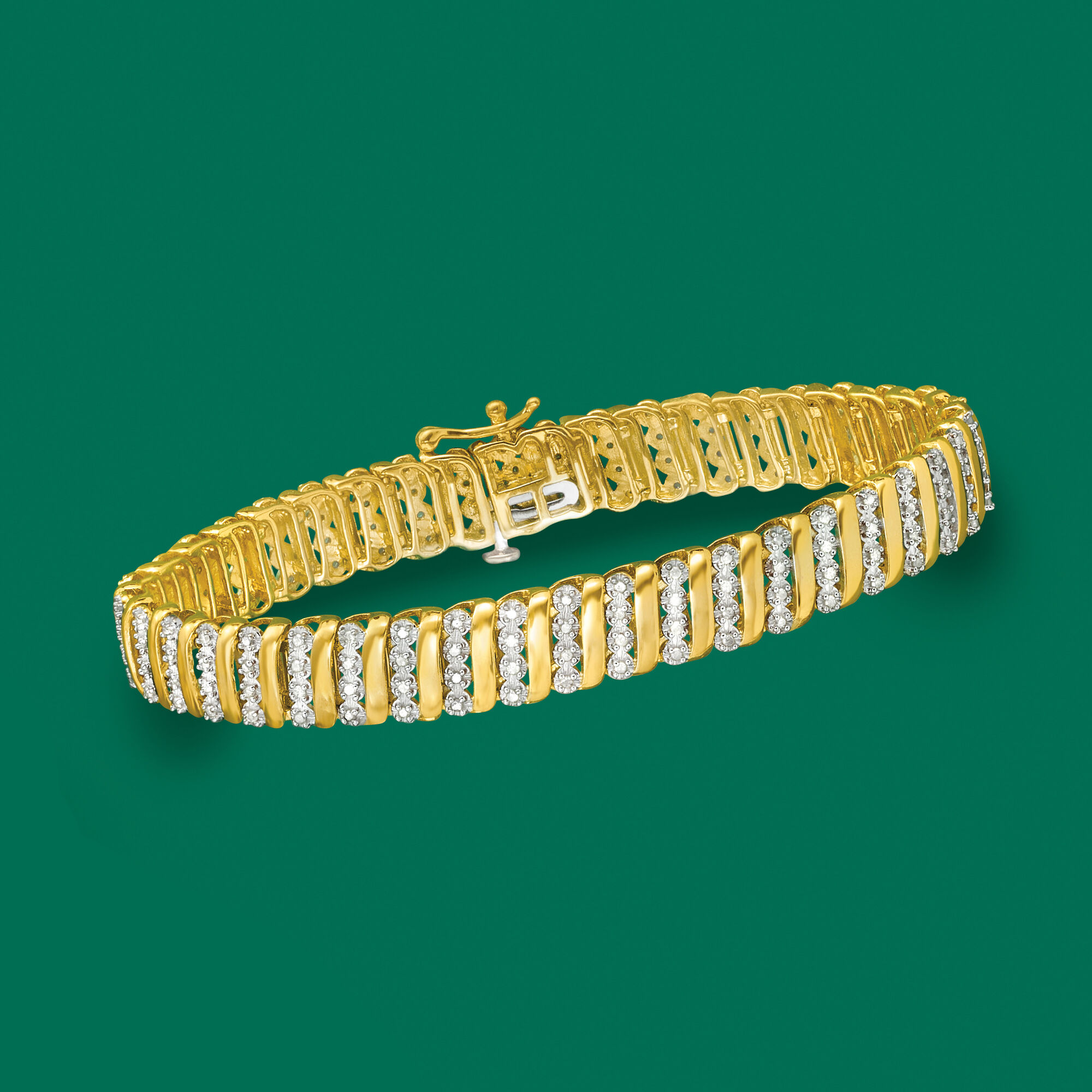 1.00 ct. t.w. Diamond Link Bracelet in 18kt Gold Over Sterling