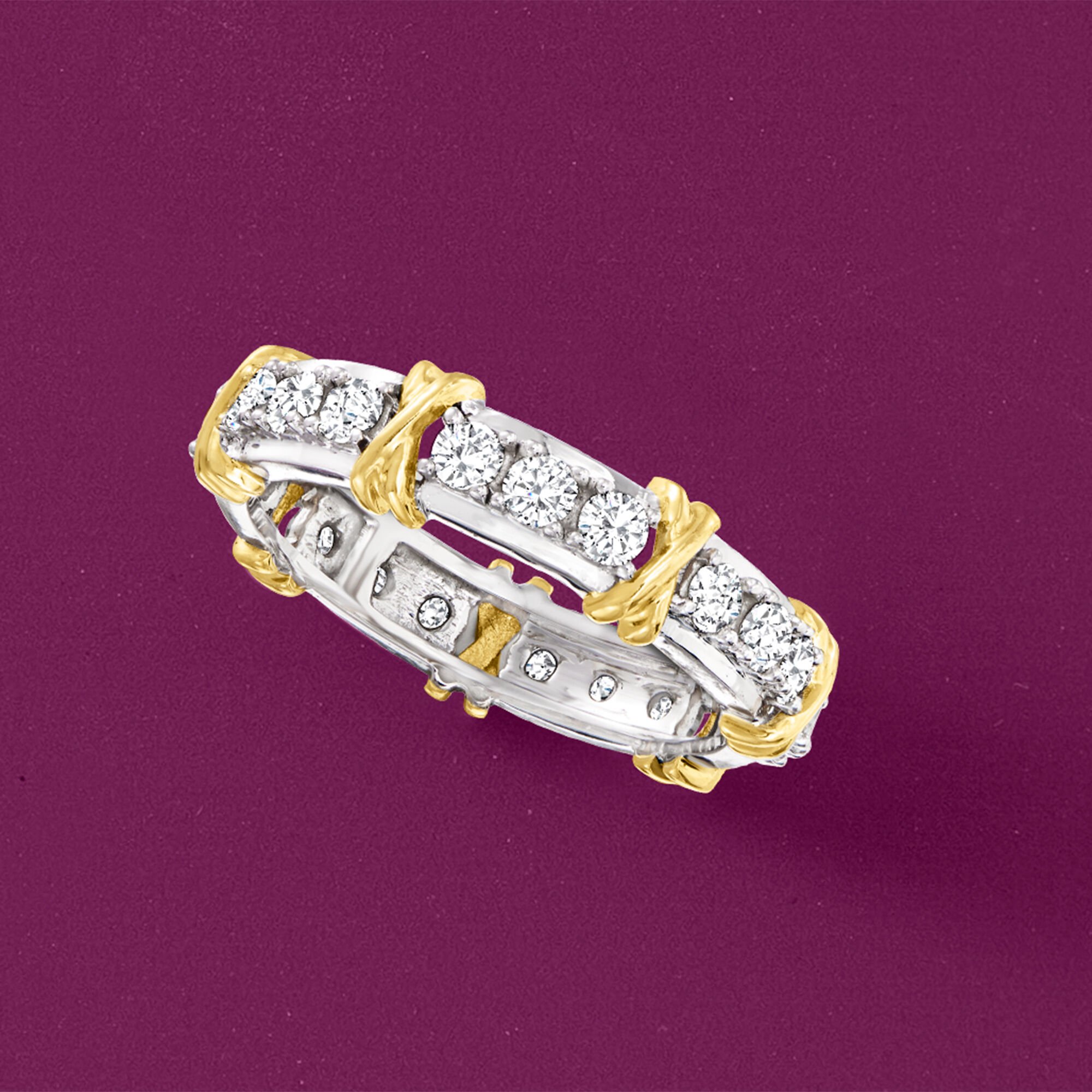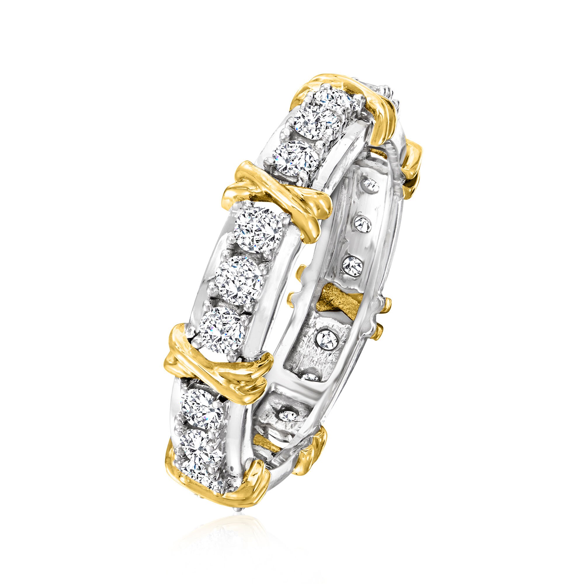 1.00 ct. t.w. Diamond X Station Eternity Band in 14kt Two-Tone Gold