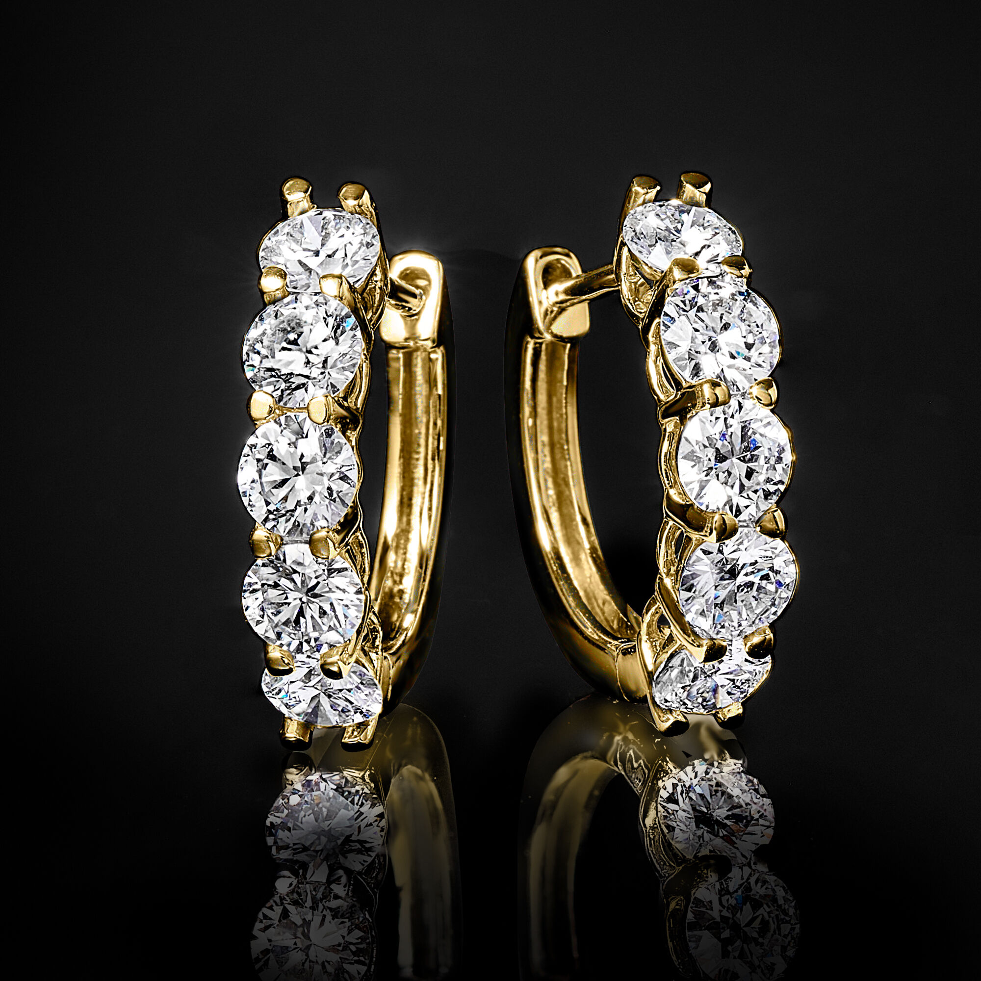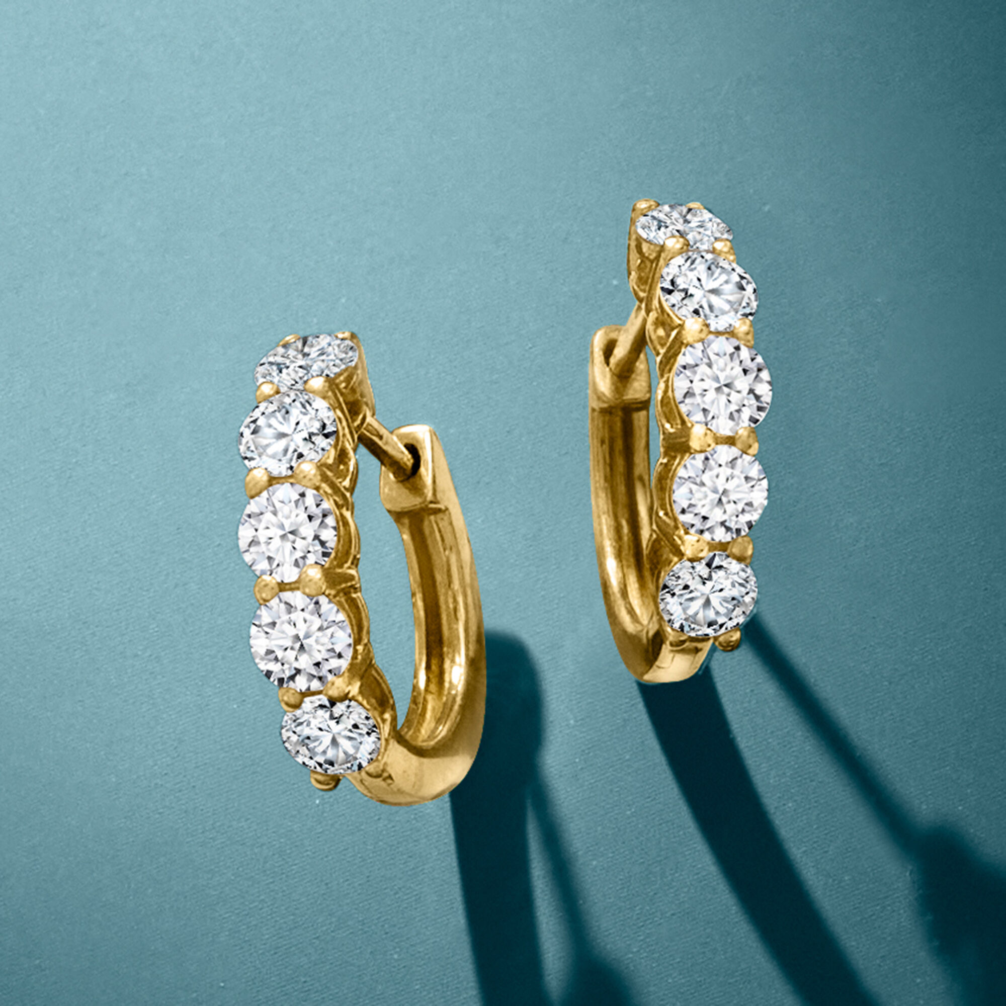 1.00 ct. t.w. Lab-Grown Diamond Five-Stone Hoop Earrings in 14kt Yellow Gold. 1/2″
