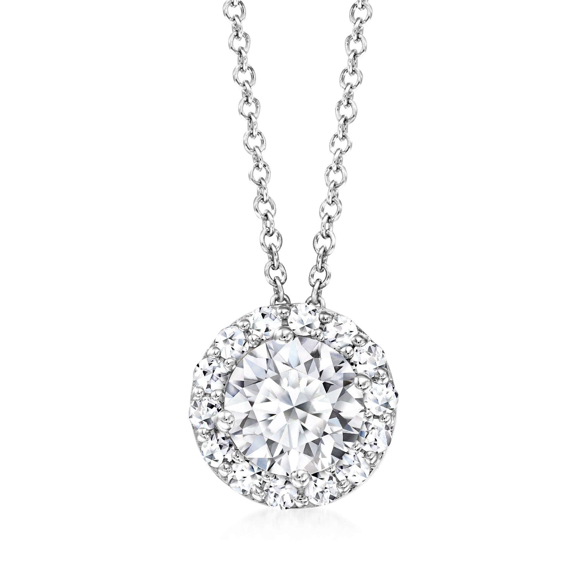 1.00 ct. t.w. Lab-Grown Diamond Halo Pendant Necklace in 14kt White Gold