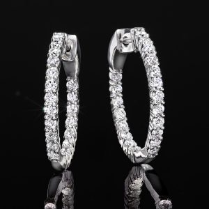 1.00 ct. t.w. Lab-Grown Diamond Inside-Outside Hoop Earrings in Sterling Silver. 3/4″