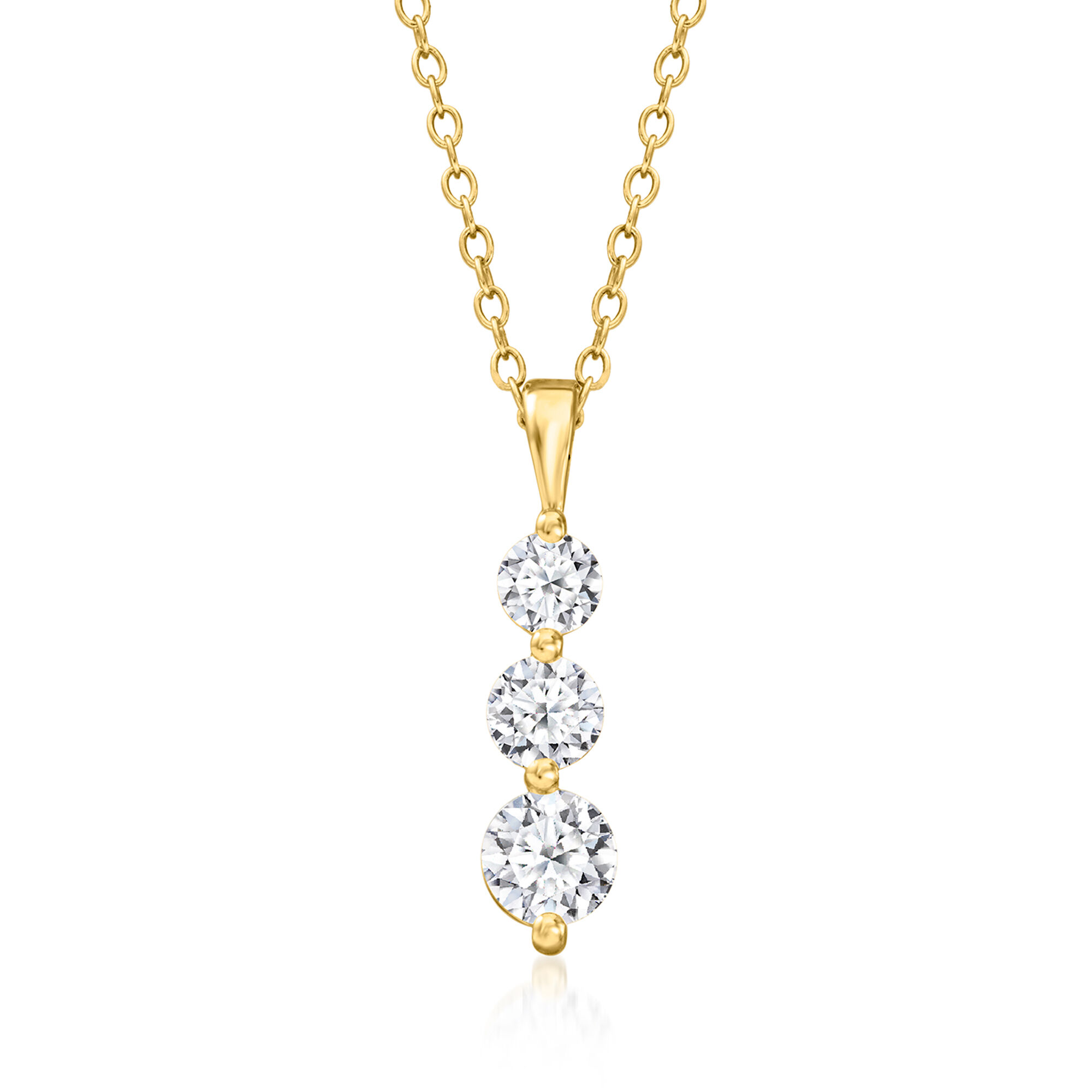 1.00 ct. t.w. Lab-Grown Diamond Three-Stone Pendant Necklace in 18kt Gold Over Sterling. 18″