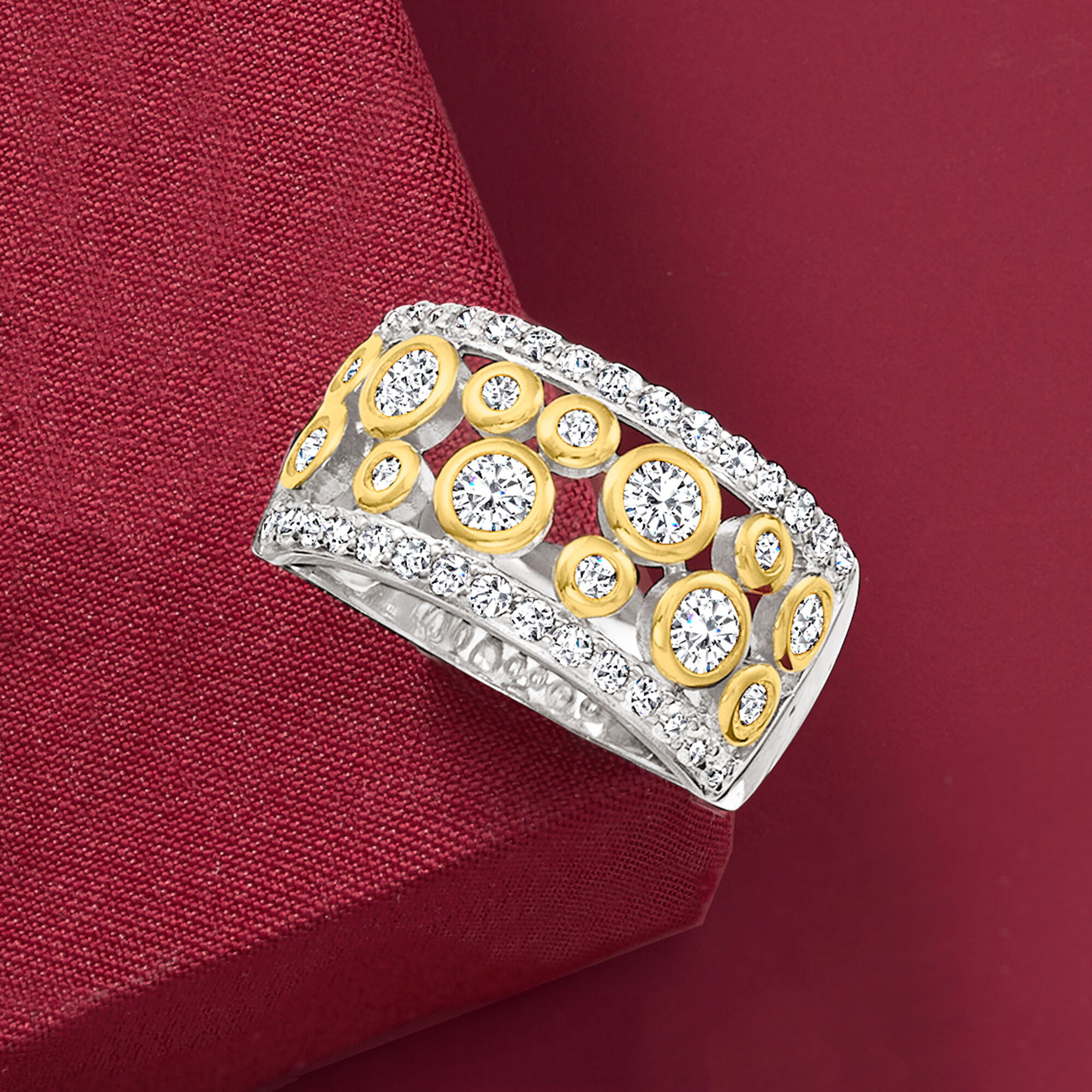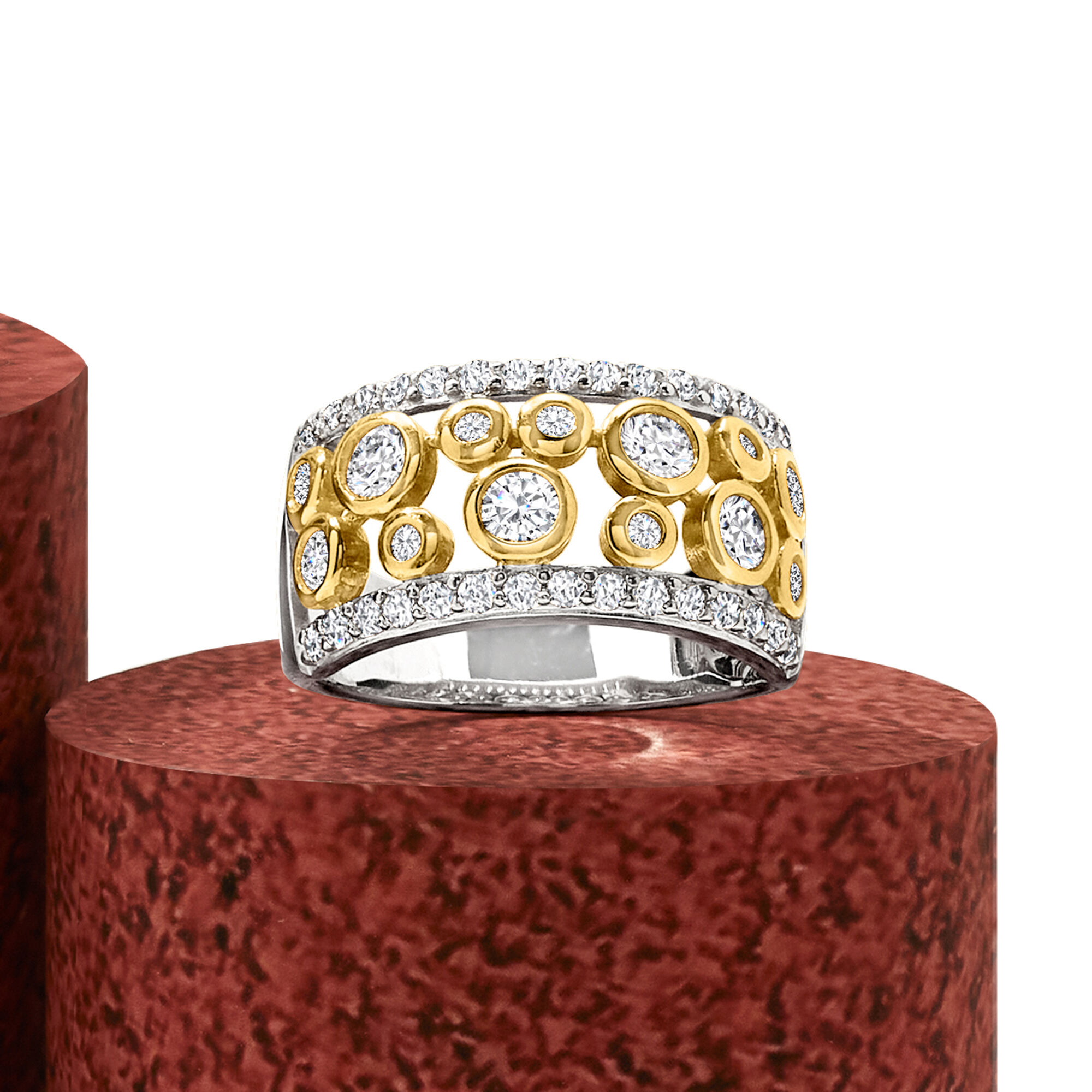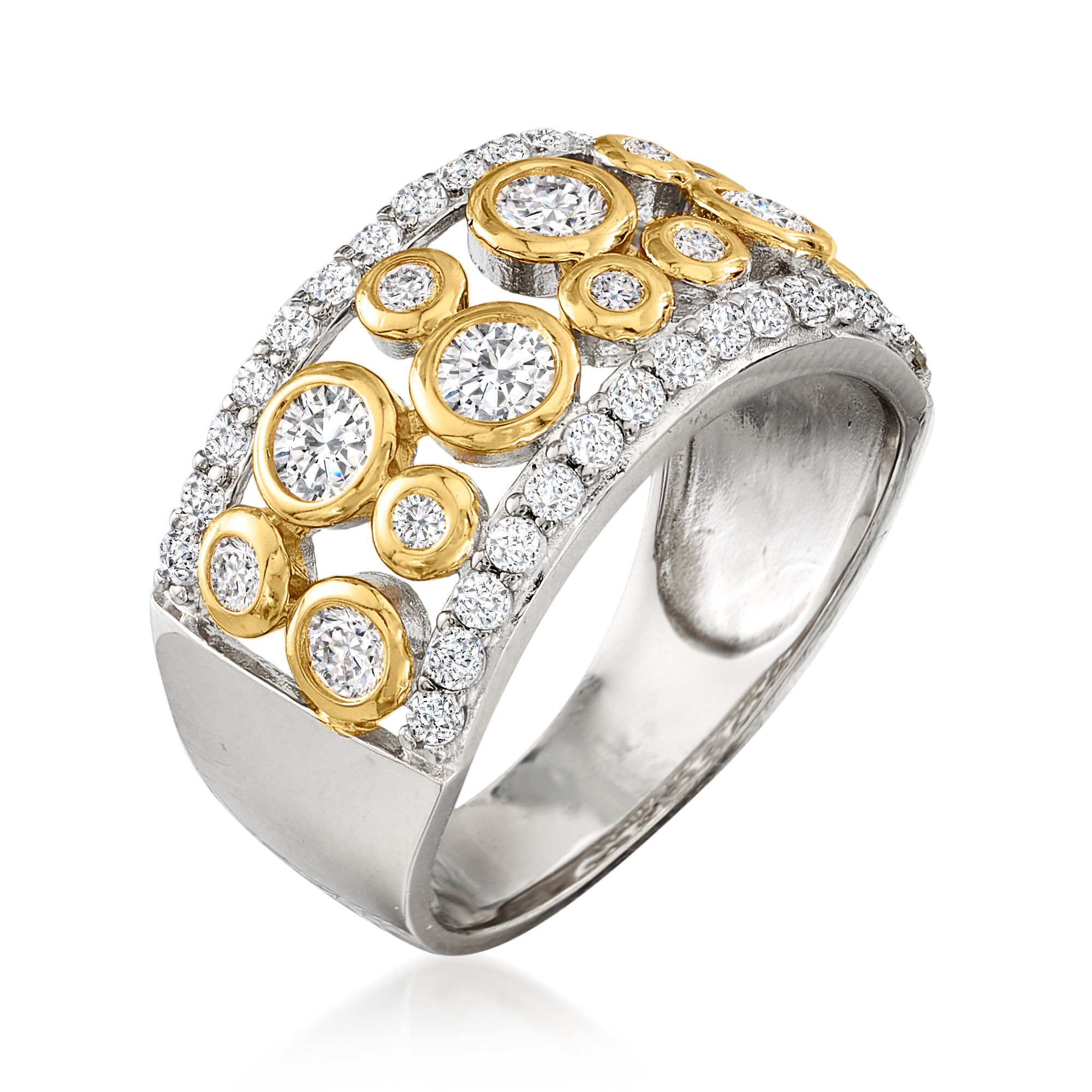1.06 ct. t.w. CZ Open-Space Bubble Ring in Two-Tone Sterling Silver