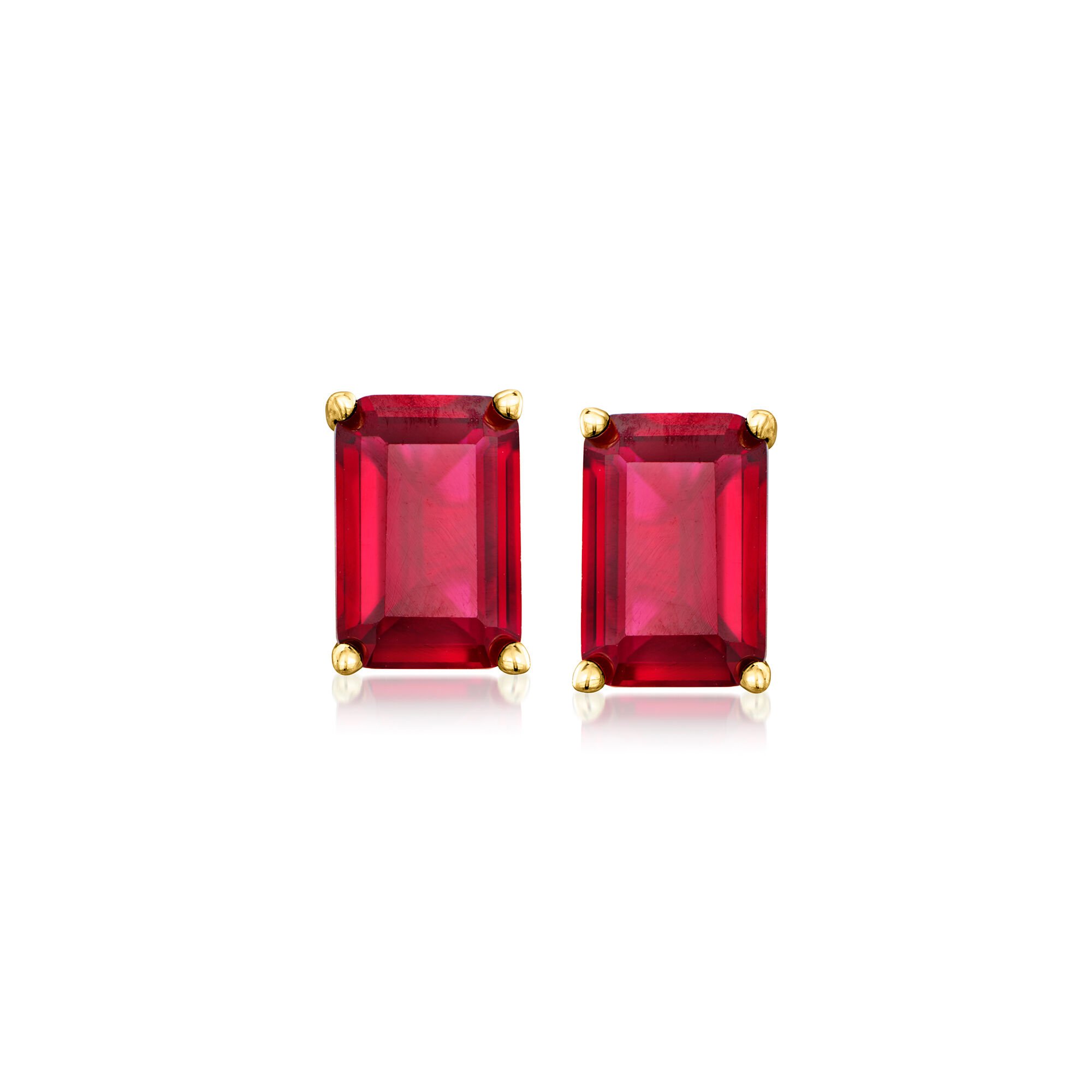 1.10 ct. t.w. Emerald-Cut Lab-Grown Ruby Earrings in 18kt Gold Vermeil