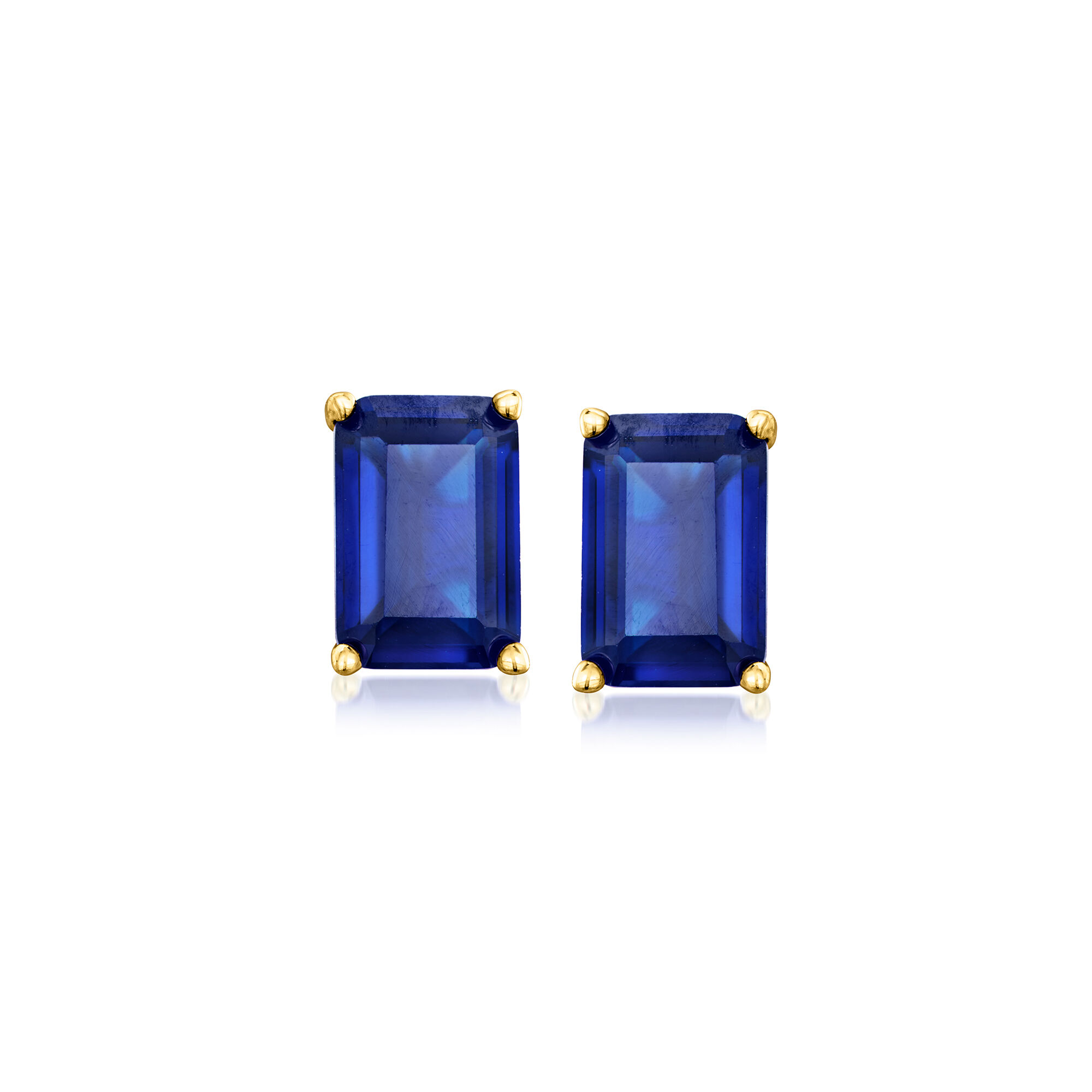 1.10 ct. t.w. Emerald-Cut Lab-Grown Sapphire Earrings in 18kt Gold Vermeil