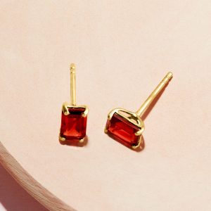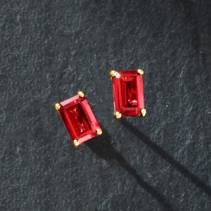 Garnet ( Color: Red, Quantity: 2, Shape & Cutting Style: Emerald, Weight: 1.20 ct. t.w., Size: 6×4 mm) |