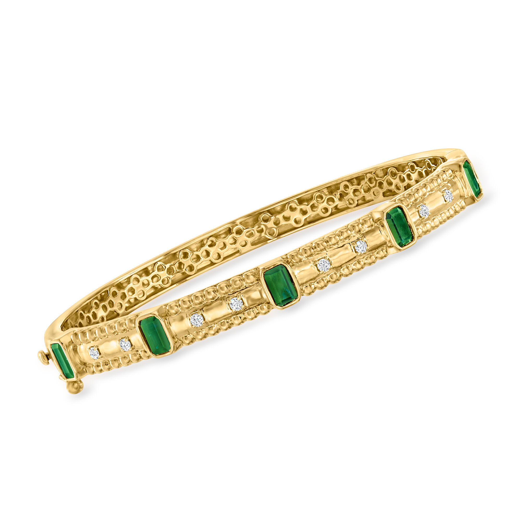 1.40 ct. t.w. Emerald and .15 ct. t.w. Diamond Bangle Bracelet in 18kt Gold Over Sterling