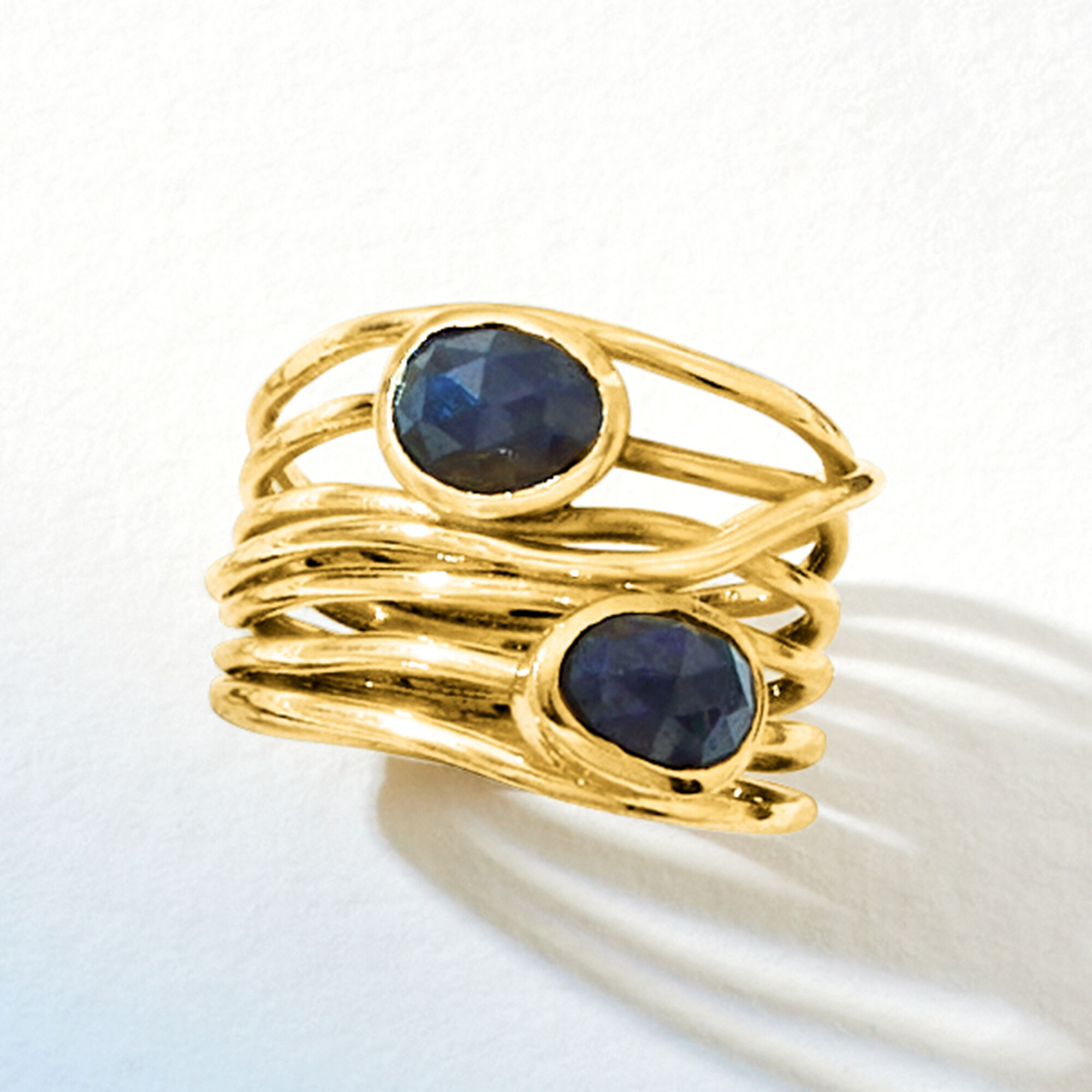 1.40 ct. t.w. Sapphire Highway Ring in 18kt Gold Over Sterling