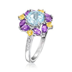 1.50 Carat Sky Blue Topaz and .60 ct. t.w. Multi-Gemstone Ring with White Topaz in Sterling Silver