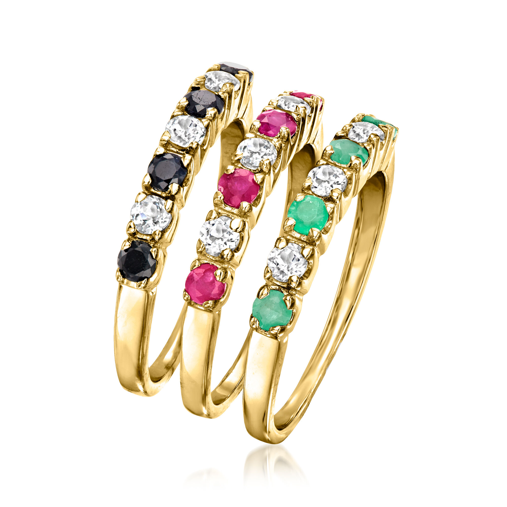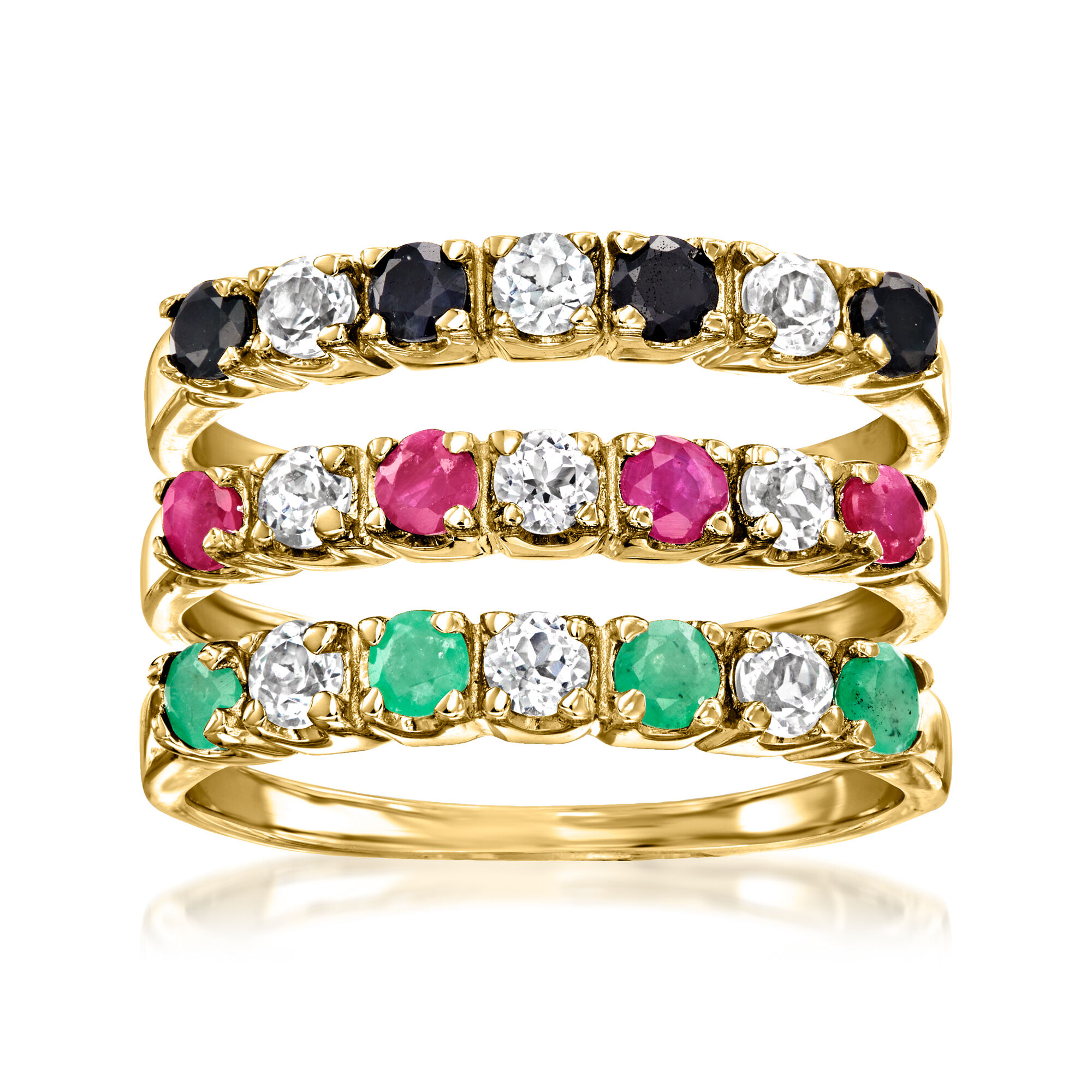 1.50 ct. t.w. Multi-Gemstone Jewelry Set: Three Rings in 18kt Gold Over Sterling