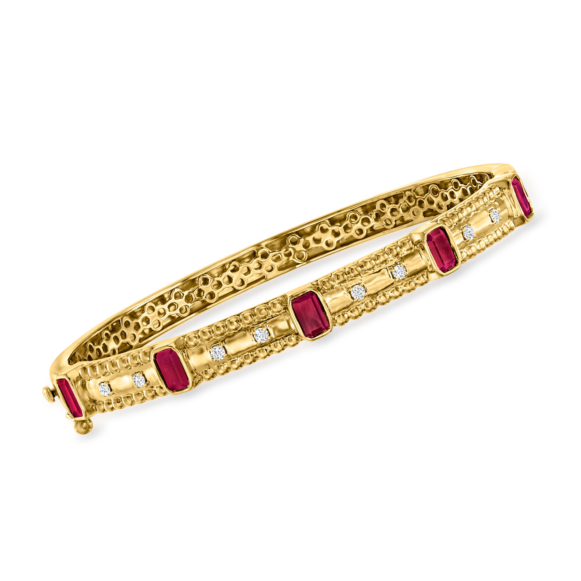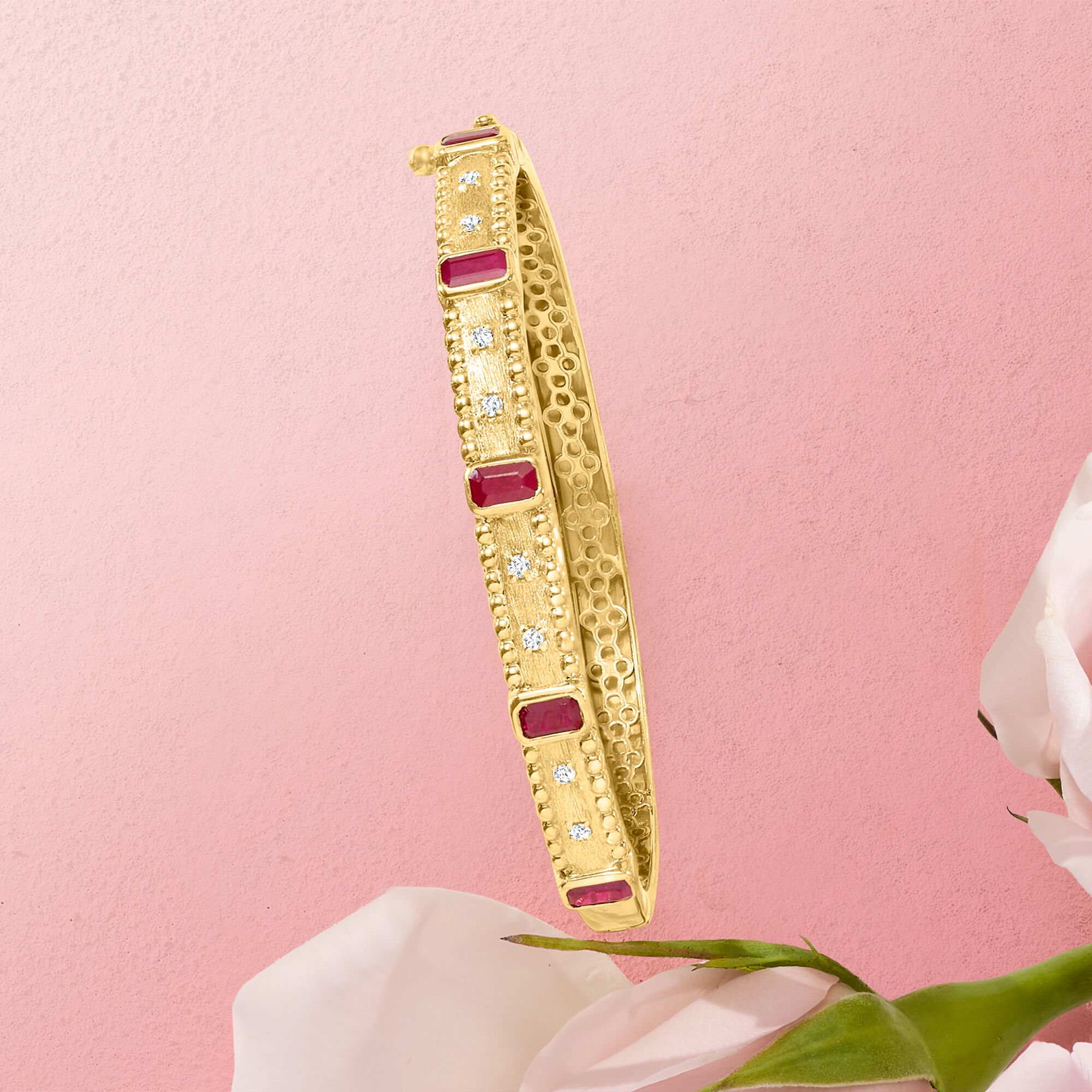 1.50 ct. t.w. Ruby and .15 ct. t.w. Diamond Bangle Bracelet in 18kt Gold Over Sterling