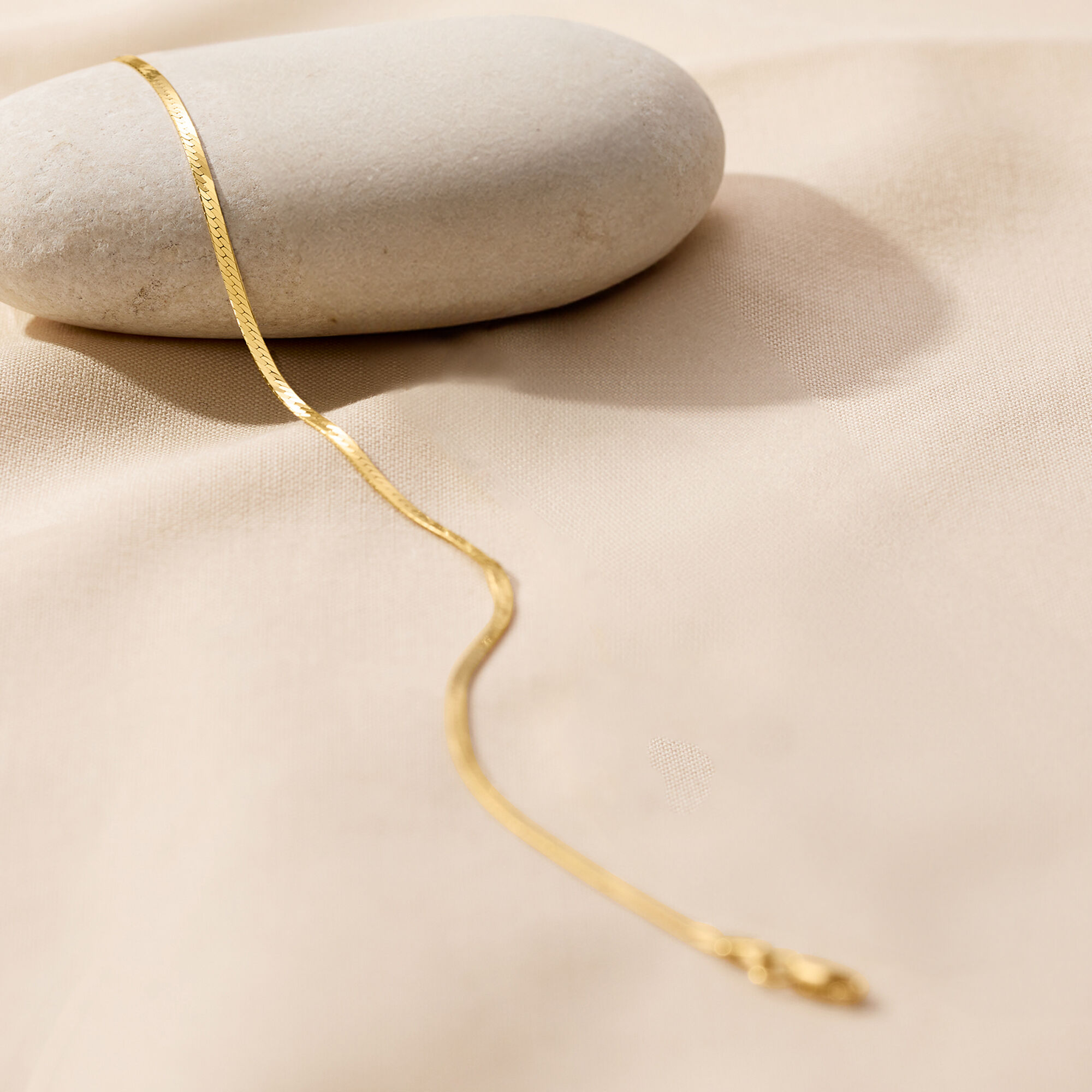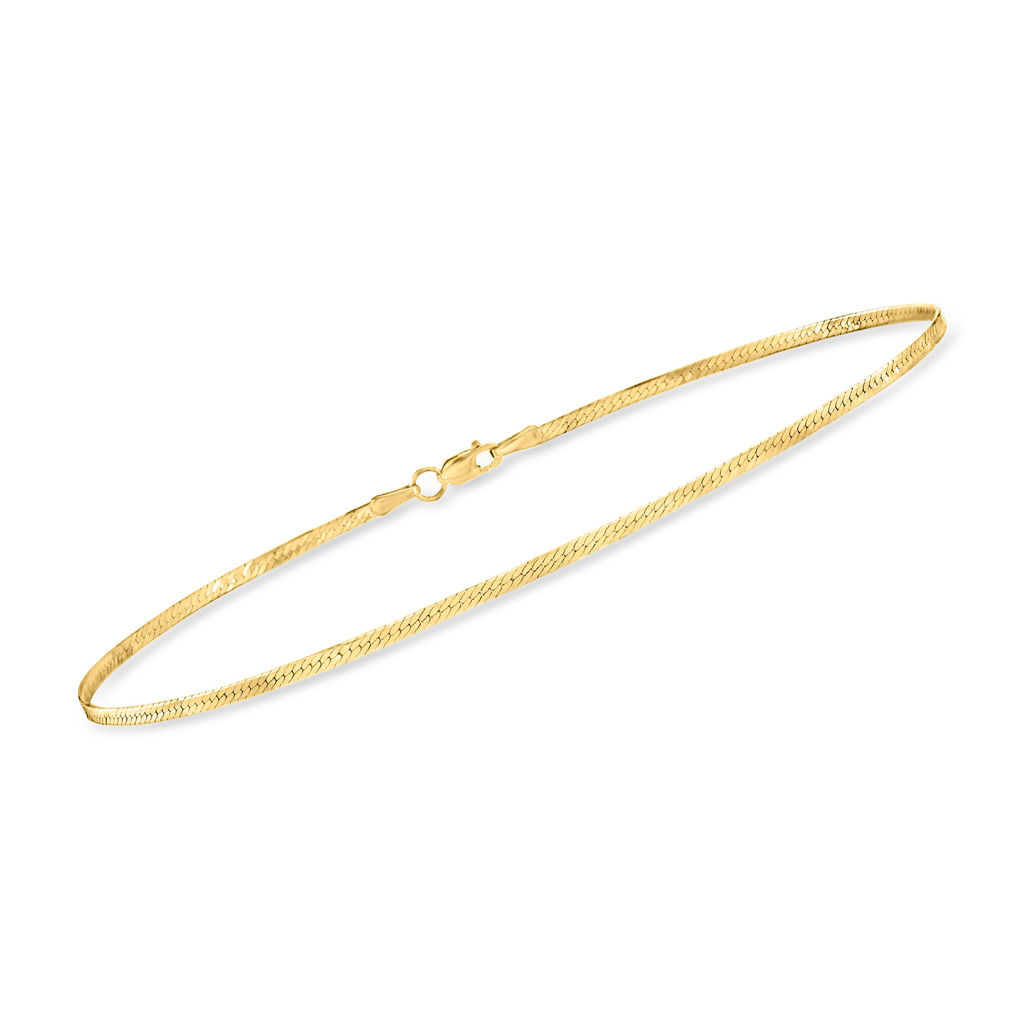1.5mm 14kt Yellow Gold Herringbone Anklet. 10″