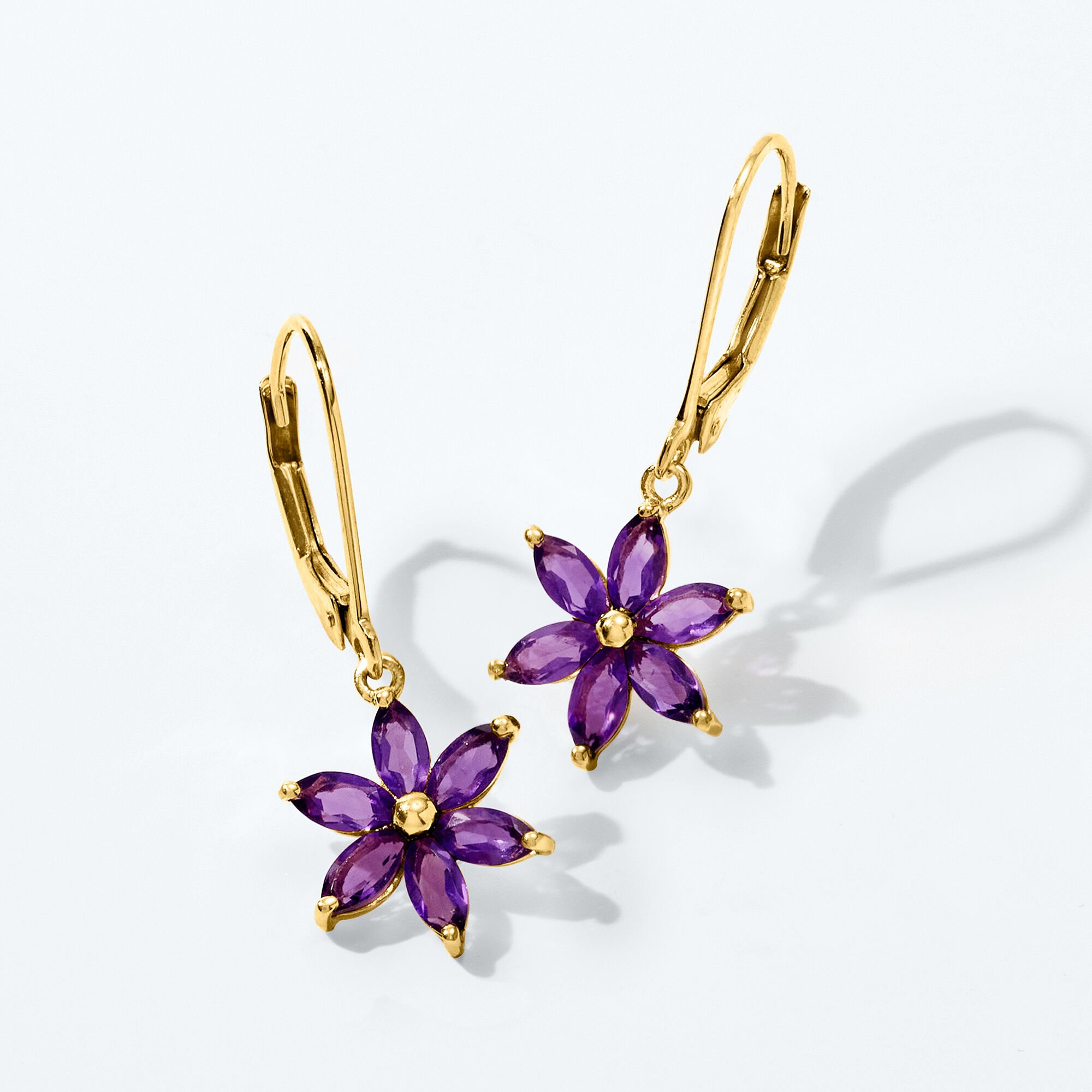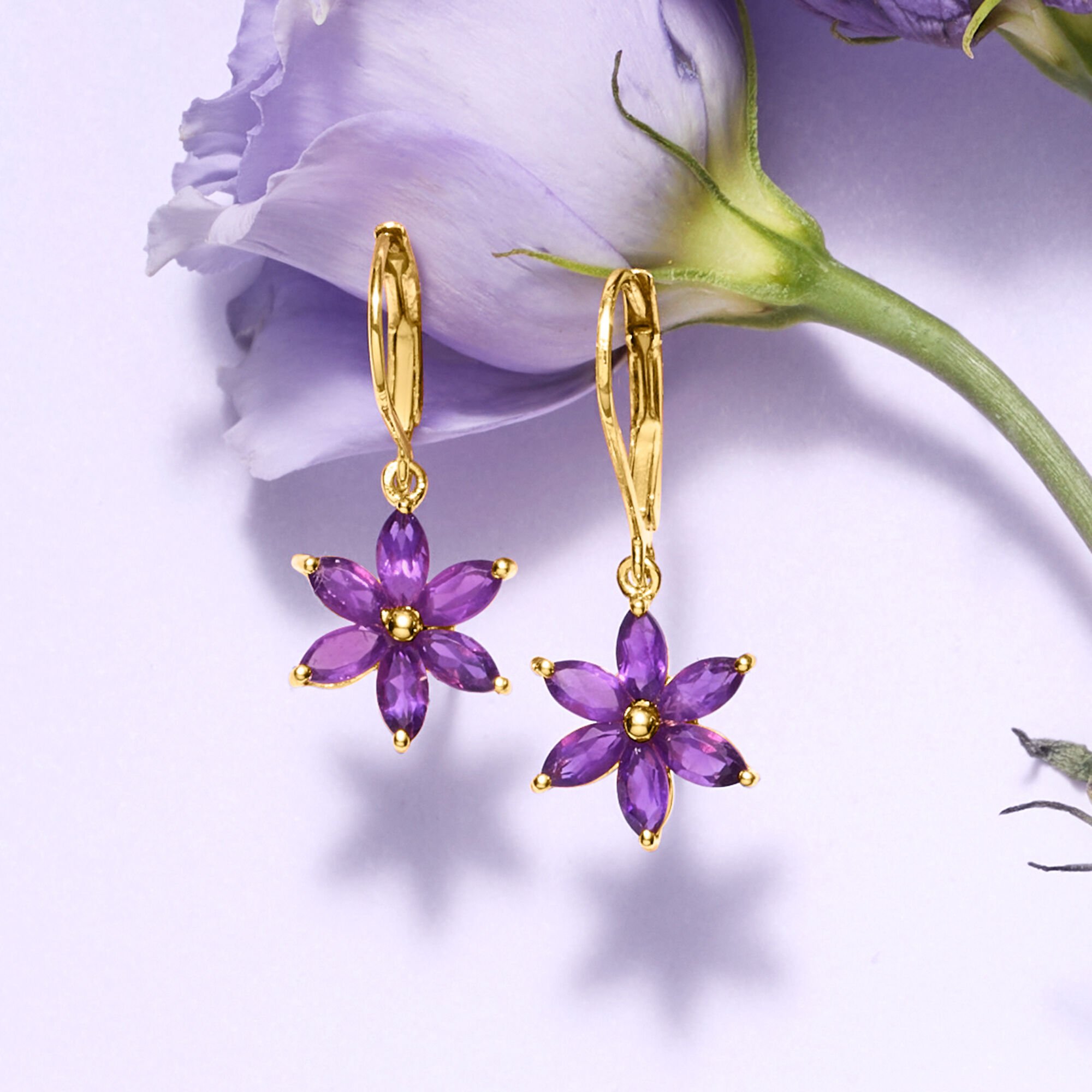 1.60 ct. t.w. Amethyst Flower Drop Earrings in 18kt Gold Over Sterling