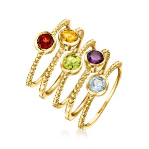 1.60 ct. t.w. Multi-Gemstone Jewelry Set: Five Rings in 18kt Gold Over Sterling
