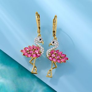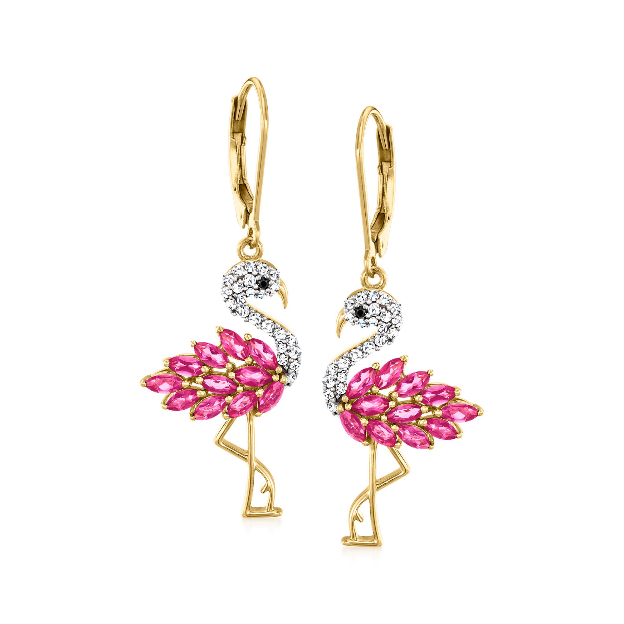 1.60 ct. t.w. Pink Topaz and .40 ct. t.w. White Zircon Flamingo Drop Earrings with Black Spinel in 18kt Gold Over Sterling