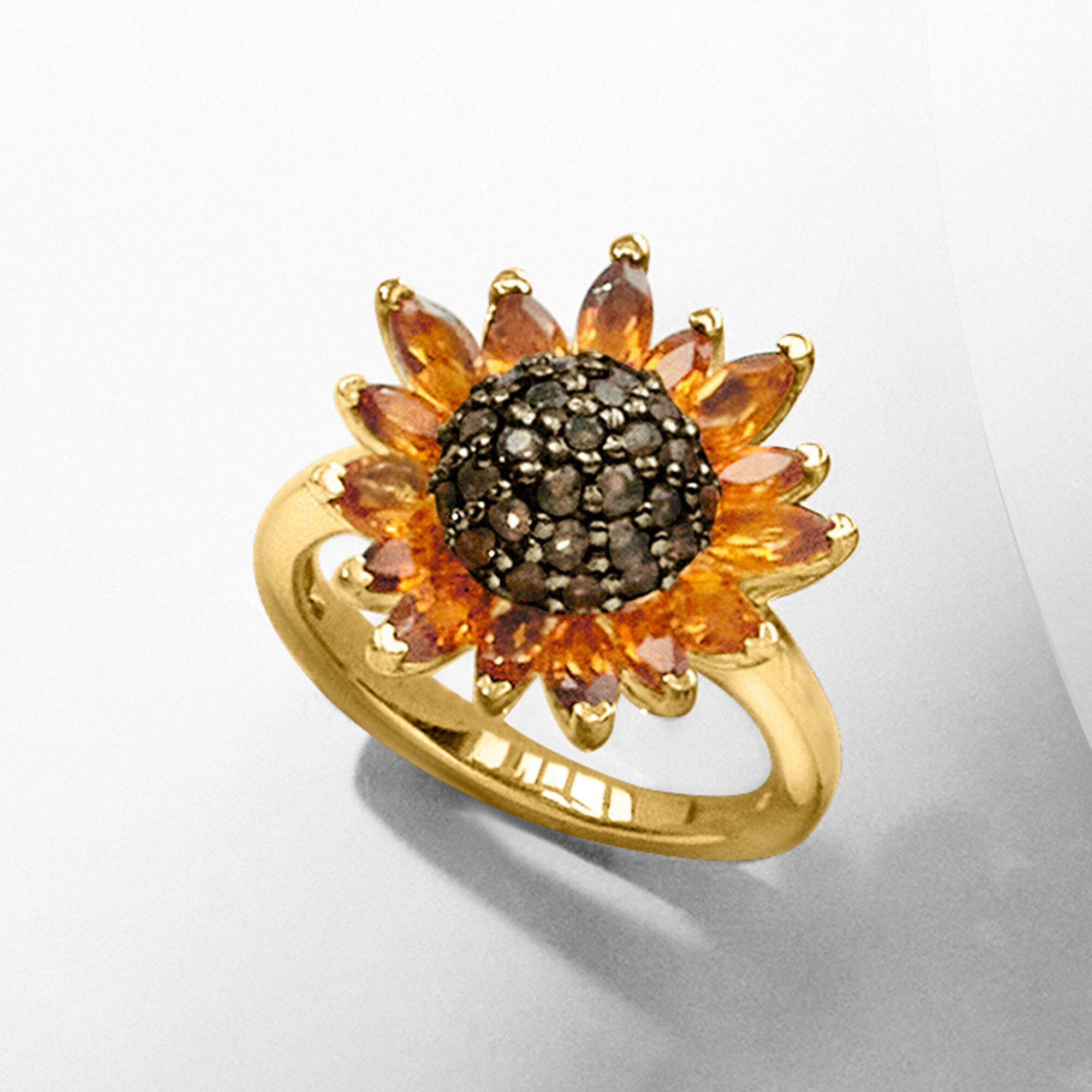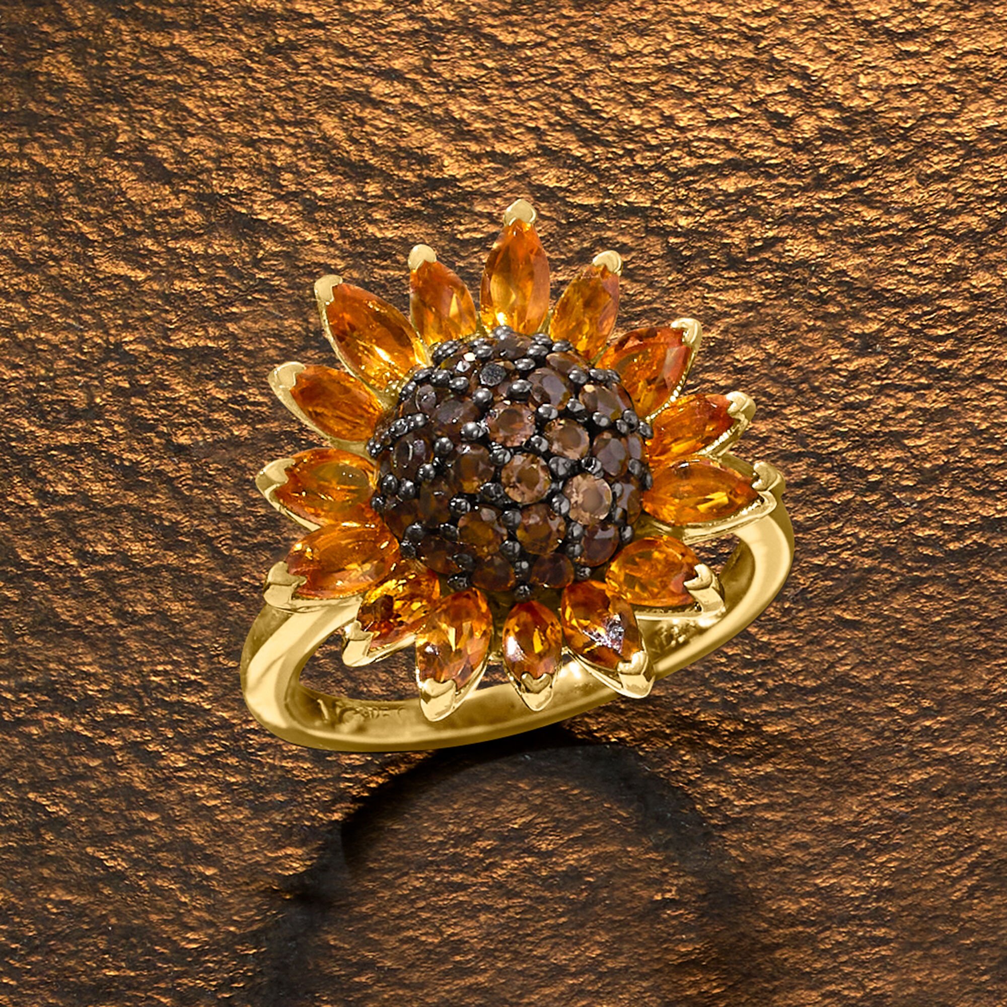 1.70 ct. t.w. Citrine and .80 ct. t.w. Smoky Quartz Sunflower Ring in 18kt Gold Over Sterling
