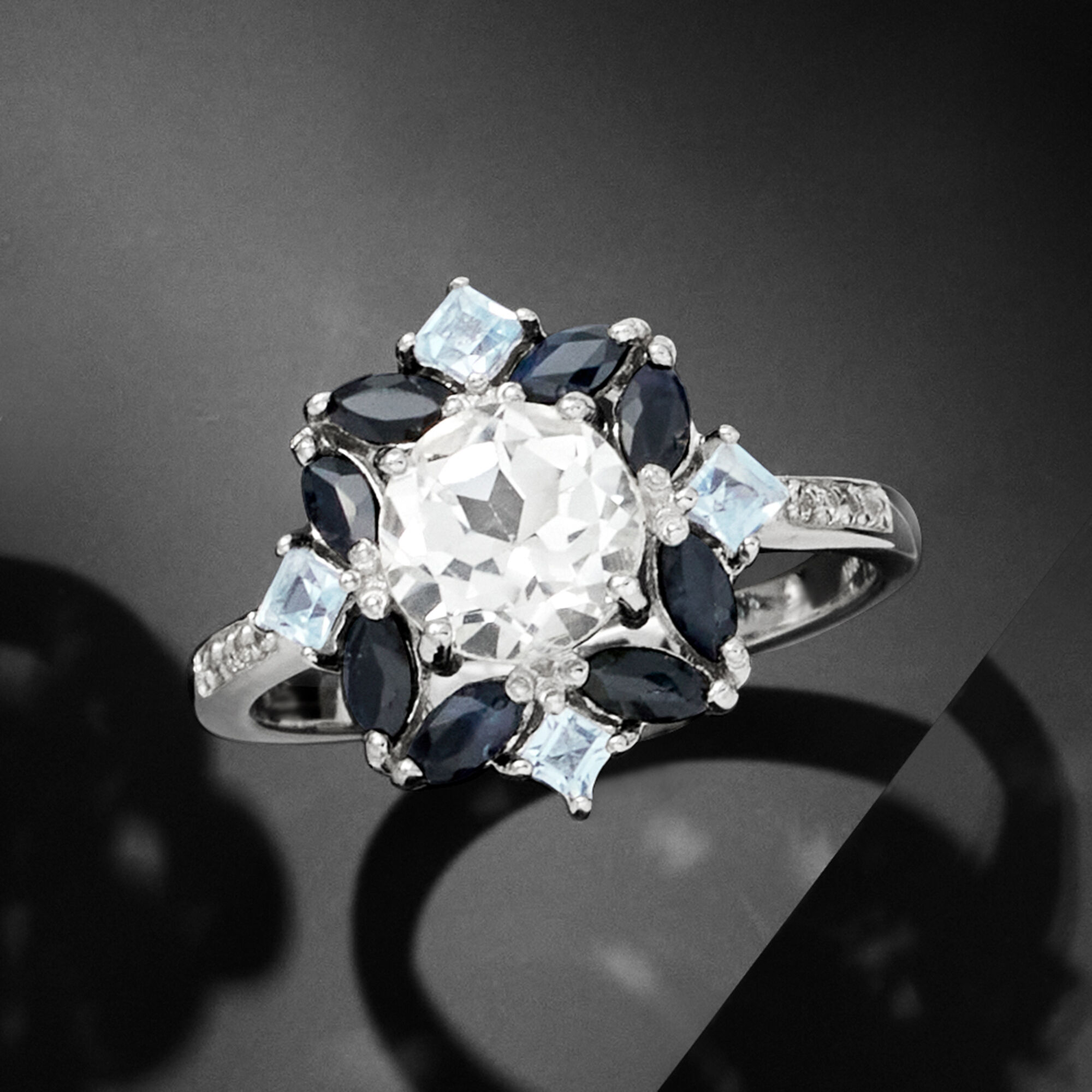 1.78 ct. t.w. White and Blue Topaz and .80 ct. t.w. Sapphire Ring in Sterling Silver