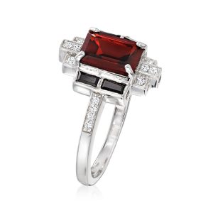 1.80 Carat Garnet and .20 ct. t.w. Black Spinel Ring with .10 ct. t.w. White Topaz in Sterling Silver