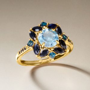 1.80 Carat Sky Blue Topaz, 2.40 ct. t.w. Sapphire and .80 ct. t.w. London Blue Topaz Ring in 18kt Gold Over Sterling