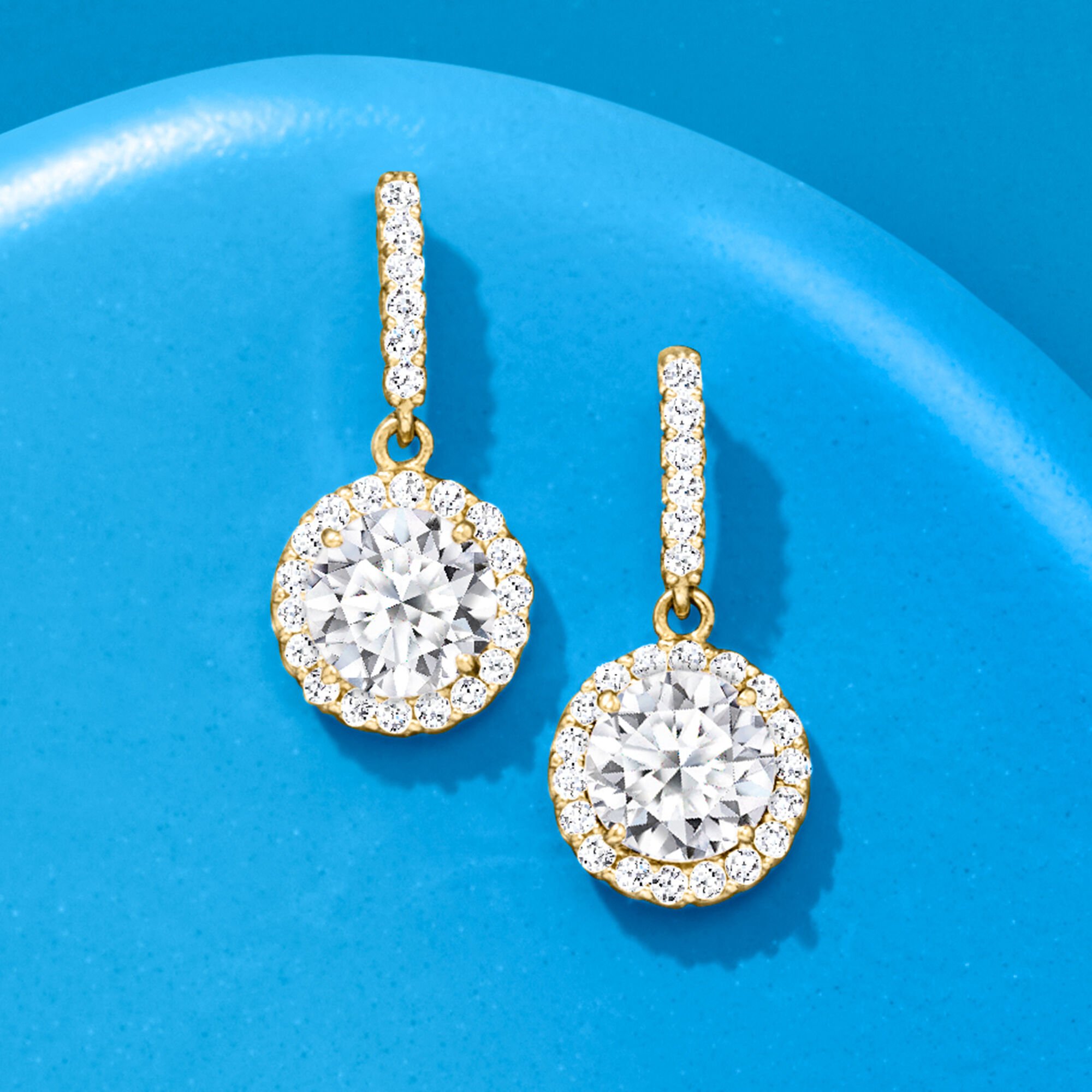 1.80 ct. t.w. CZ Halo Drop Earrings in 14kt Yellow Gold