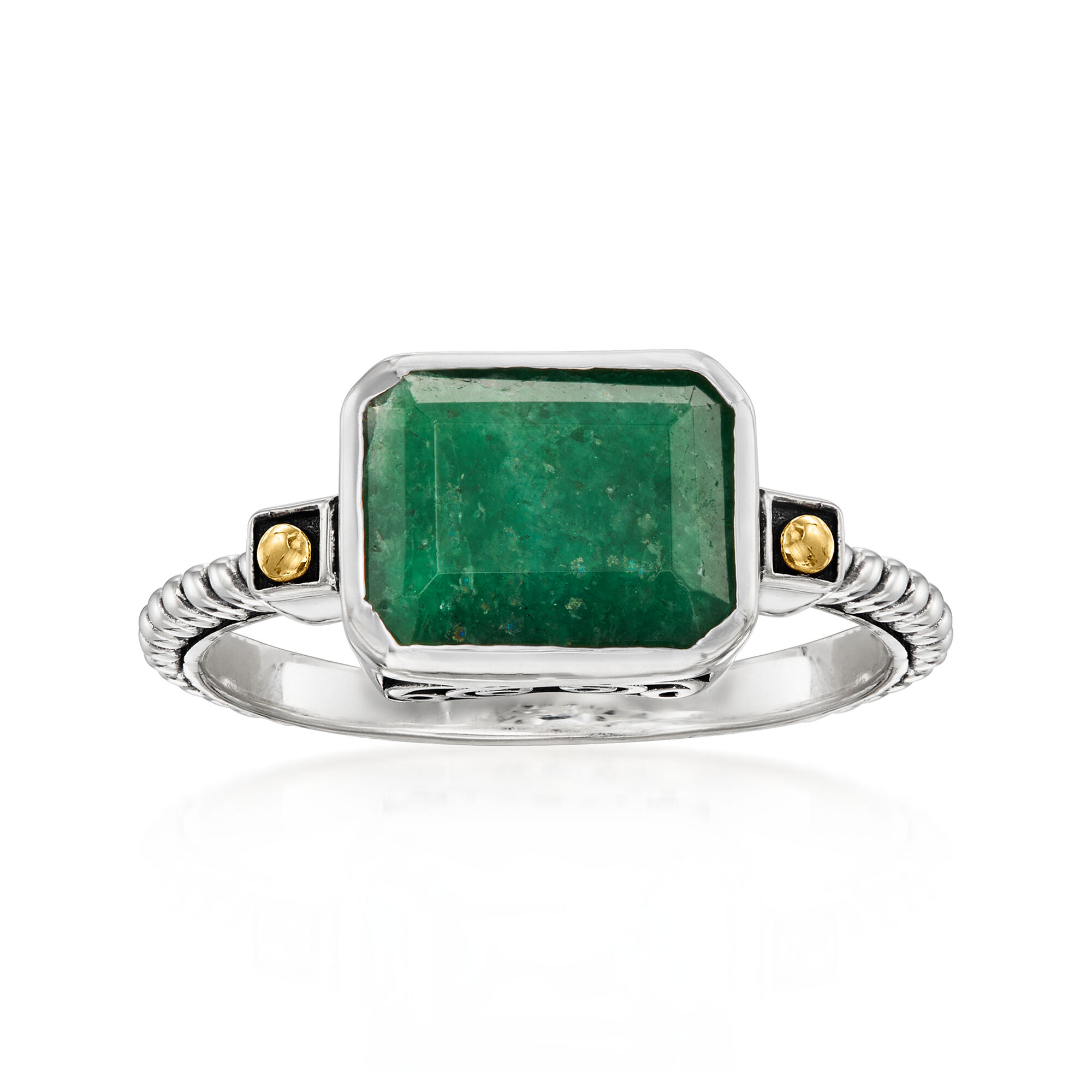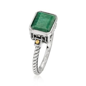 1.90 Carat Emerald Bali-Style Twisted Ring in Sterling Silver with 18kt Yellow Gold