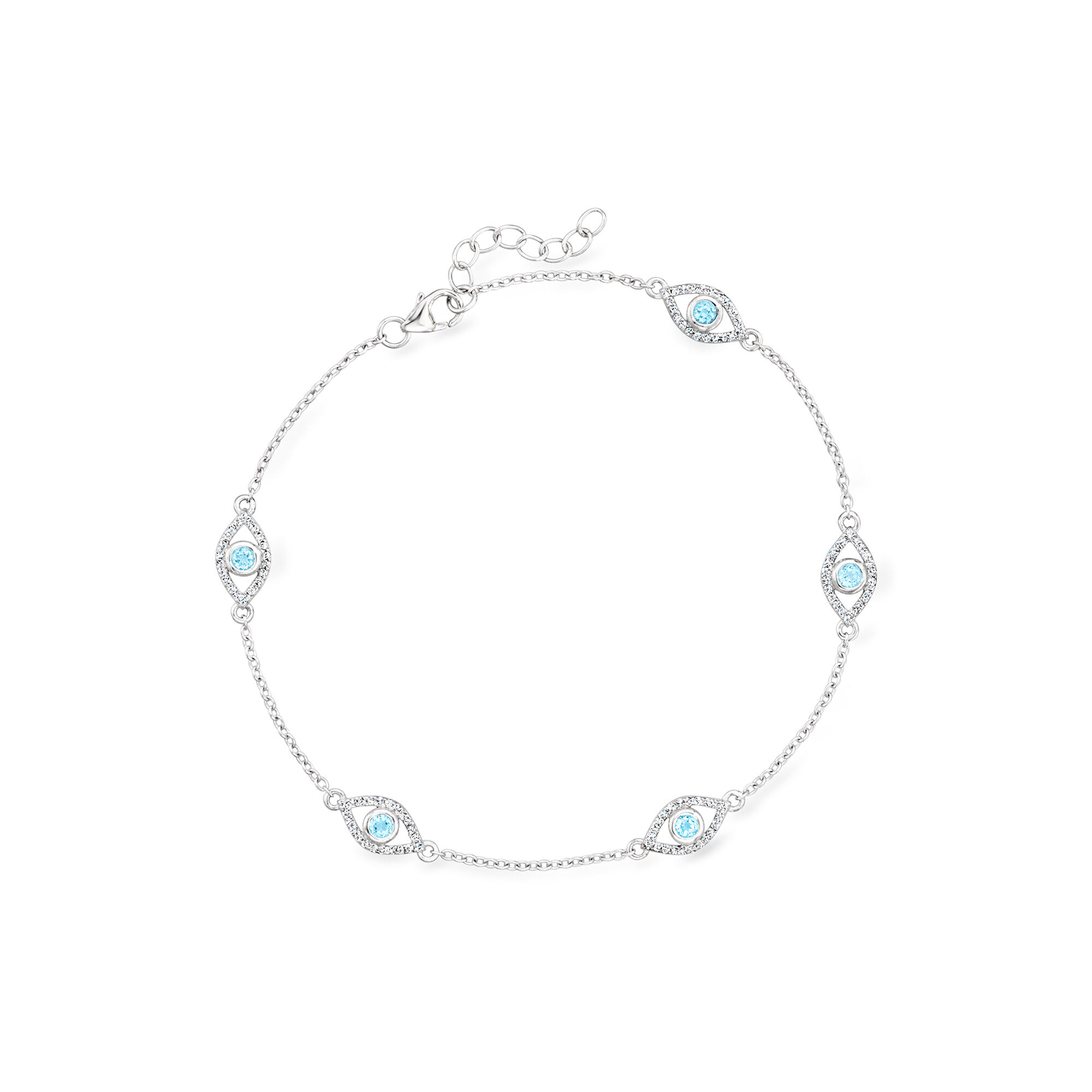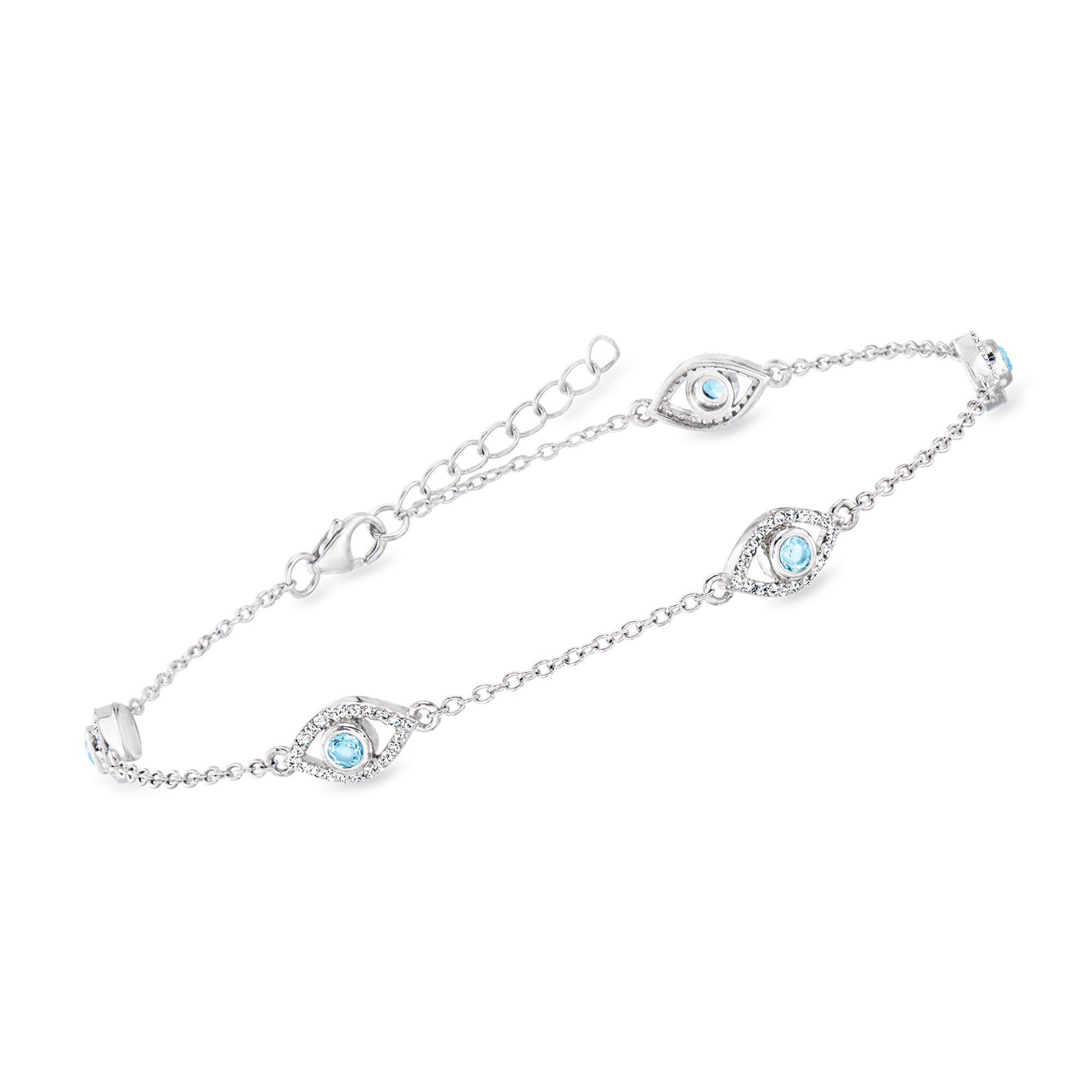 1.90 ct. t.w. Swiss Blue and White Topaz Evil Eye Station Anklet in Sterling Silver. 9″