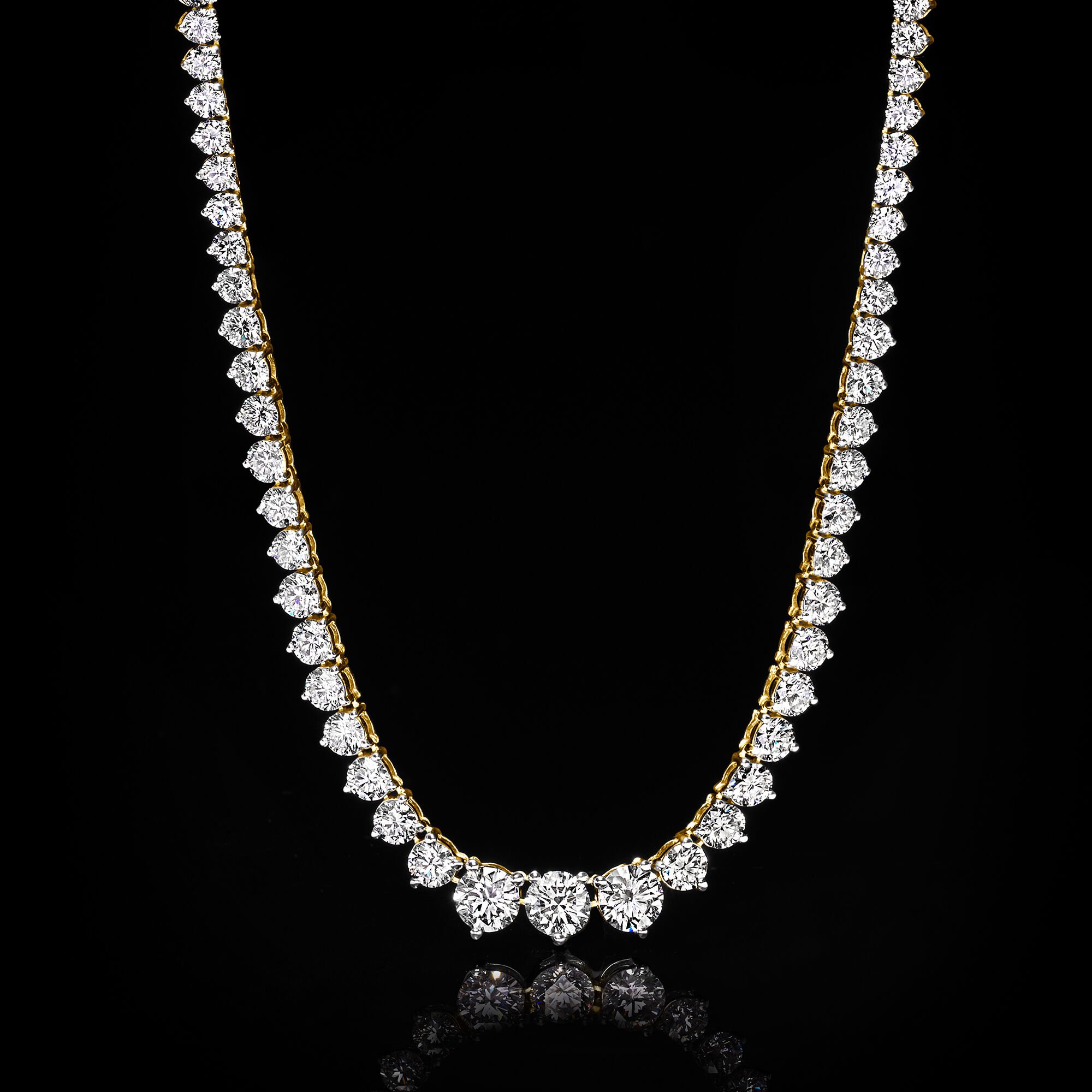 15.00 ct. t.w. Graduated Lab-Grown Diamond Tennis Necklace in 14kt Yellow Gold