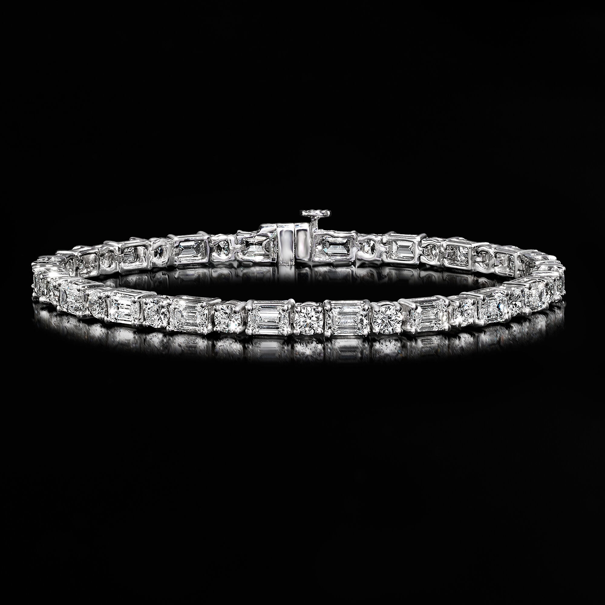 10.00 ct. t.w. Round and Emerald-Cut Lab-Grown Diamond Tennis Bracelet in 14kt White Gold