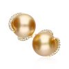 12-13mm Cultured South Sea Pearl Drop Earrings with .80 ct. t.w. Diamonds in 18kt Yellow Gold